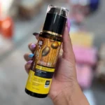 پس از شستن موها و خشک کردن با حوله، مقدار کمی از روغن را کف دست بریزید و بهطور یکنواخت روی موها بمالید. توجه کنید که نیاز به شستشو ندارد.